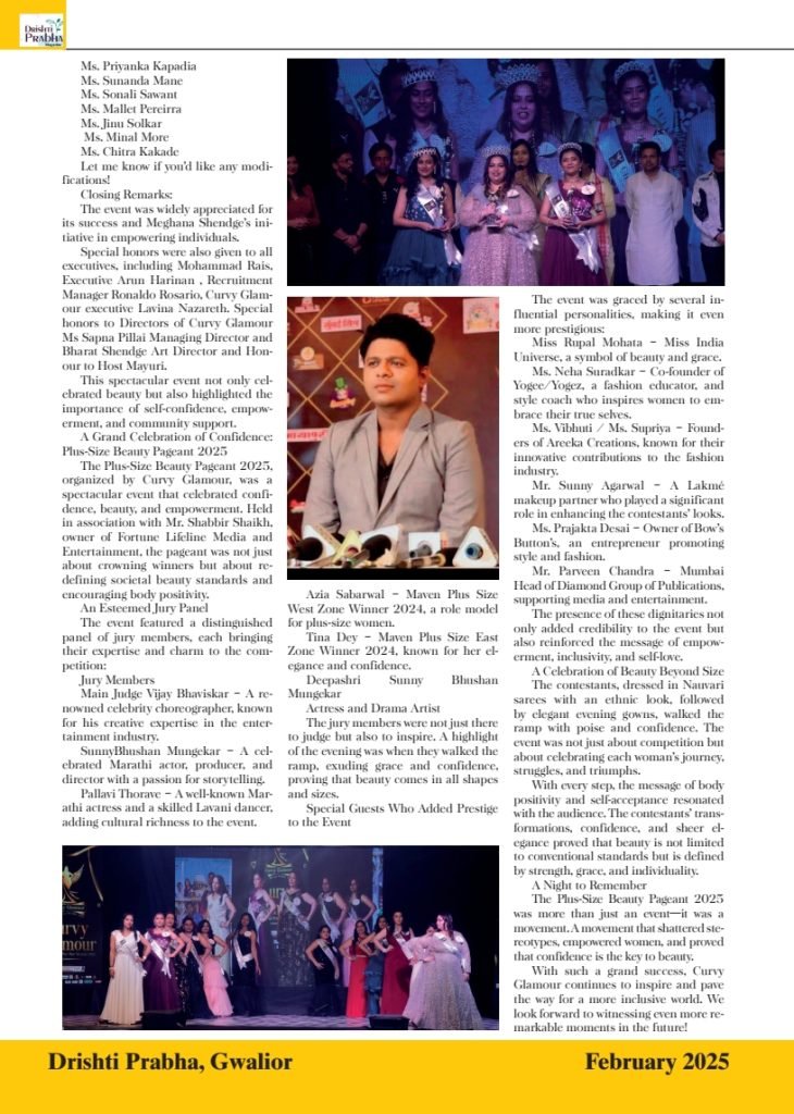 The Plus-Size Beauty Pageant 2025, organized by Curvy Glamour, was a spectacular event that celebrated confidence, beauty, and empowerment. Held in association with Mr. Shabbir Shaikh, owner of Fortune Lifeline Media and Entertainment, the pageant was not just about crowning winners but about redefining societal beauty standards and encouraging body positivity.