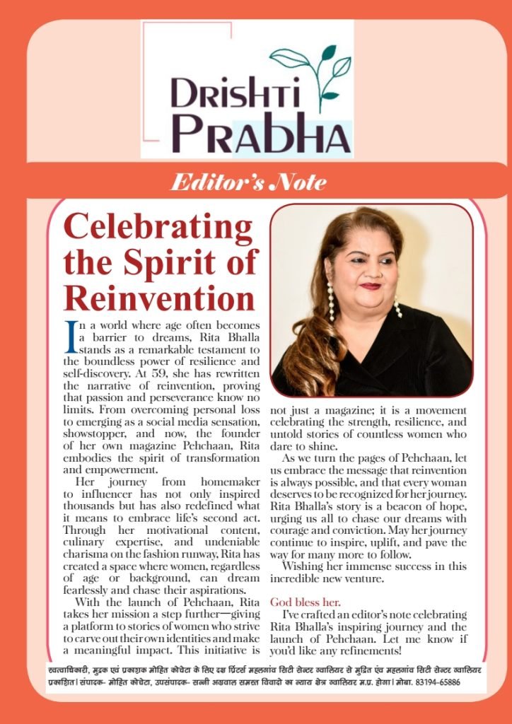 With numerous awards, collaborations, and a loyal fan base, Rita continues to inspire and uplift. Whether it’s through her motivational talks, her culinary creations, or her graceful presence on the ramp, Rita Bhalla proves that life’s second act can be even more extraordinary than the first.