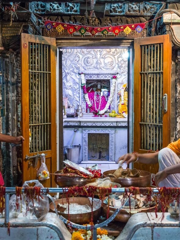 During Navratri, the temple comes alive with thousands of devotees celebrating nine nights of worship in March/April and October/November.
