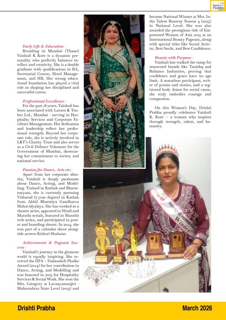 Vaishali K. Kore is more than an achiever; she is an inspiration. She reminds us that a woman can be a corporate leader, a classical dancer, a national volunteer, and a queen—all at once.